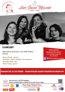 Le 26 octobre à 15h30 à l’église de Nesploy, le quatuor LES PERIS
